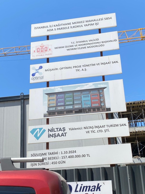 Kağıthane Merkez Mahallesi'nde, 5854 ada 5 parselde yapımı devam eden yeni ilkokul binamızın inşaat çalışmaları hızla ilerlemektedir. İstanbul Valiliği Yatırım İzleme ve Koordinasyon Başkanlığı Yatırım İzleme Müdürlüğü'nün denetiminde, Optimal Proje Yönetim ve İnşaat San. Tic. A.Ş. müşavirliğinde ve Niltaş İnşaat Turizm San. ve Tic. Ltd. Şti. yükleniciliğinde yürütülen bu önemli projenin tamamlanmasıyla birlikte okulumuz, modern ve donanımlı bir eğitim ortamına kavuşacaktır.